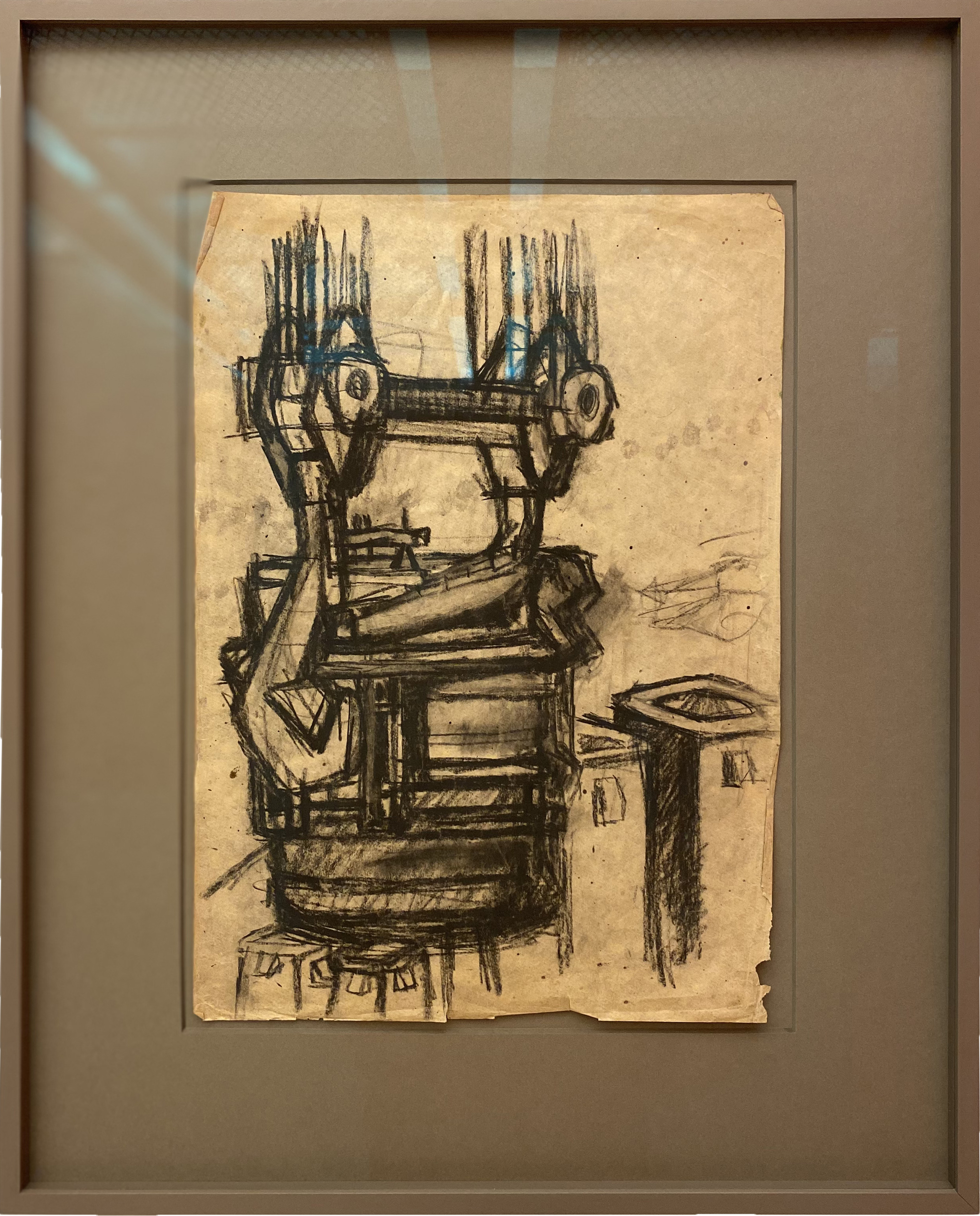 Demonul lui Maxwell la care facem referire în titlul articolului este și denumirea unui obiect-instalație al lui Bertalan, compus din fire textile pe un cadru din lemn. Lucrarea nu este inclusă în parcursul expoziției de la MARe, dar este importantă și e menționată în cadrul tururilor ghidate organizate de muzeu.