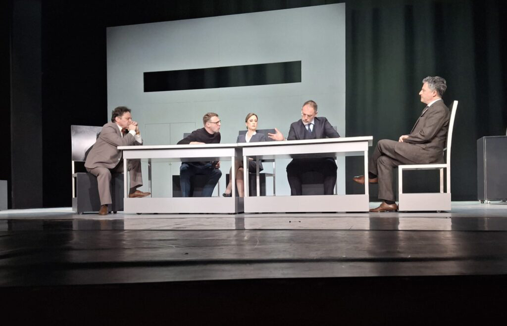 Cunoaștem acest gen de abordare când creatorul ar vrea să spună tot sau prea multe pentru spațiul limitat al unui spectacol. Intențiile de aprofundare umană a cazului doctorului Bernhardi reușesc, cu toate acestea, să producă un spectacol atractiv, tensionat, care pledează pentru adevăruri, fie și comune, în spațiul public, prin argumentul unor biografii verosimile. Alternarea tonului dramatic cu umorul e o altă calitate a spectacolului pe care o impun, prin discreta ironie din jocul lor excelent, actrițele Dana Dogaru și Ofelia Popii. Chiar și bățoșenia ipocrită a Medeei Marinescu într-un contre-emploi surprinzător capătă autenticitate în contextul de implicare exemplară a întregii distribuții. Ministreasa Mirelei Oprișor, fosta iubită a doctorului, personaj inventat de Claudiu Goga, completează peisajul uman care diversifică povestea lui Schnitzler în direcții neașteptate. Când imaginația i-a obosit, regizorul lasă, din păcate, doar schițate personajele încredințate lui Alexandru Potocean și lui Andrei Ioan Ionescu, pe care interpreții le gestionează conform intențiilor de a reprezenta zona de normalitate, Potocean în rolul colegului bun, familistul, profesionistul încă nealterat de carierism, față de celălalt, remarcat prin fidelitatea față de mentorul său. Pentru Ada Galeș – asistenta care susține cu aplomb scena revoltei în numele cauzei celor nedreptățiți, intimidați, marginalizați, pauperizați –, devine neverosimil modul în care scenariul o implică mai apoi în procesul doctorului, ca martor mincinos.
